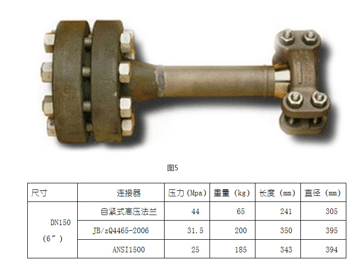 因連接螺栓只有4個(gè),故與傳統高頸法蘭相比較,ZY-LOC的外廊尺寸及重量均大大減小,如下表,下圖5所示。